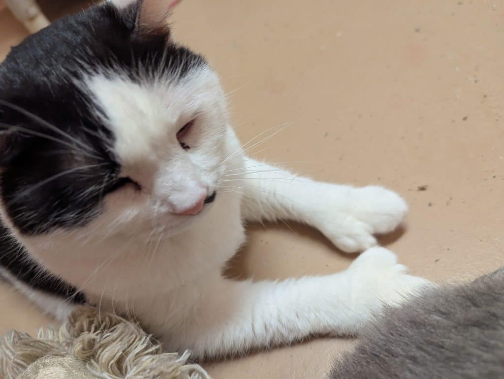 Mr. Hippo is a sweet middle- aged adult boy who was found with an injury to his face. he’s a very sweet boy who would do well in a home as an only cat.