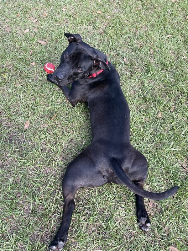 Hazel’s story is one of incredible resilience. After a tragic incident where she was shot in the back with a BB gun and left paralyzed, Hazel has made remarkable progress. Thanks to the dedication of our staff and volunteers, she is now walking—and she no longer needs her stroller! It’s amazing to see how quickly she gets around and how joyfully she plays with the other dogs in the yard.
