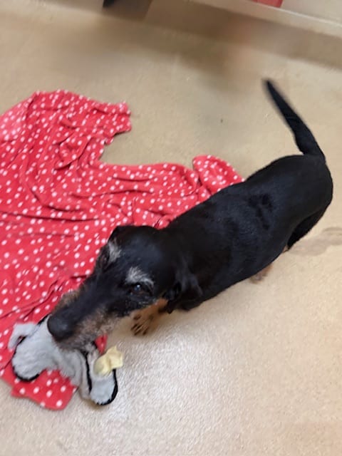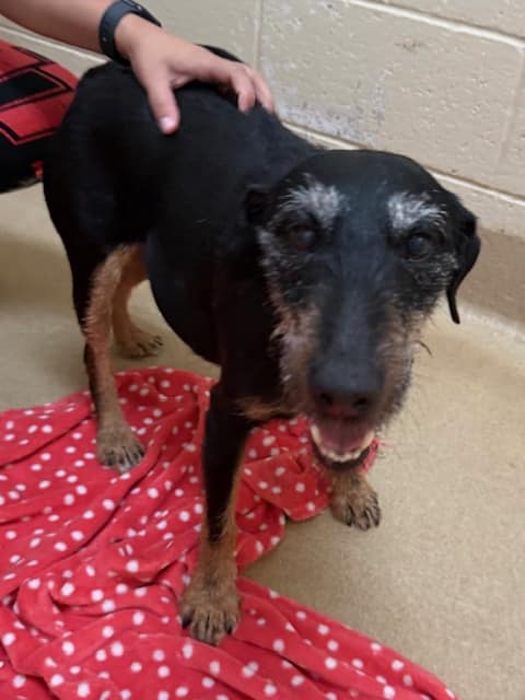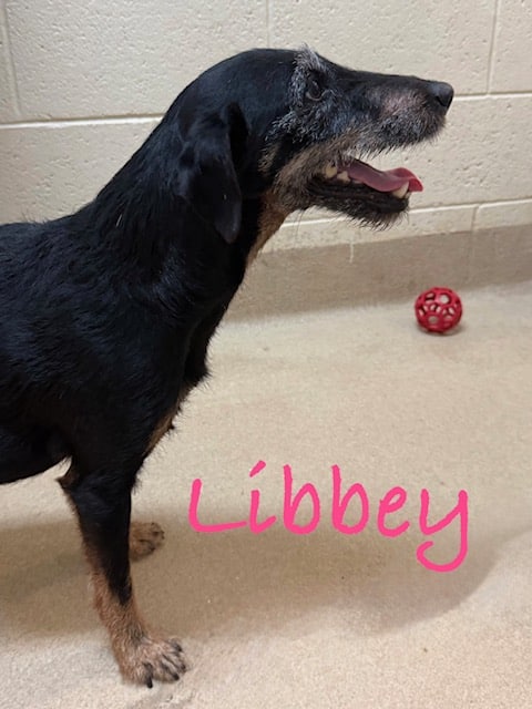 Libbey is a sweet senior terrier mix, born around 2016, and has been at Dogs & Cats Forever since April 2026.