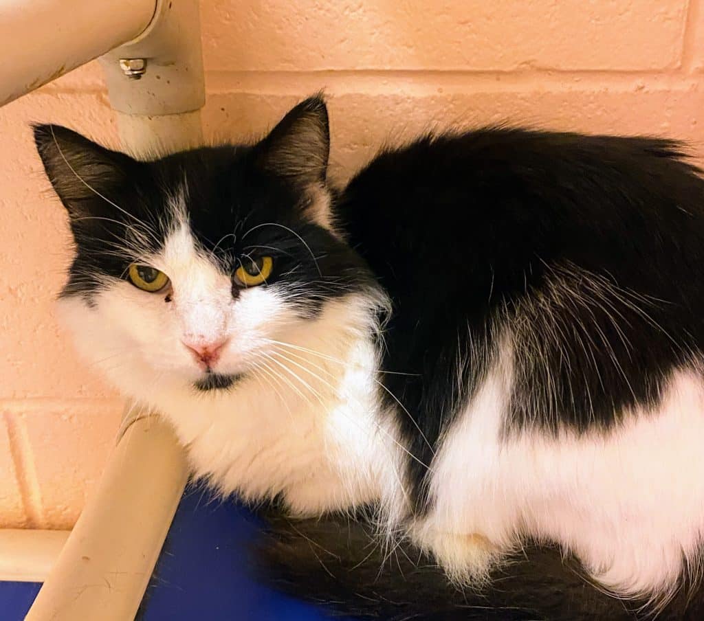 Jack is a handsome eight-year-old Russian blue mix boy who was confiscated from a hoarding situation. He’s very sweet and gentle and he would love a quiet adult time.